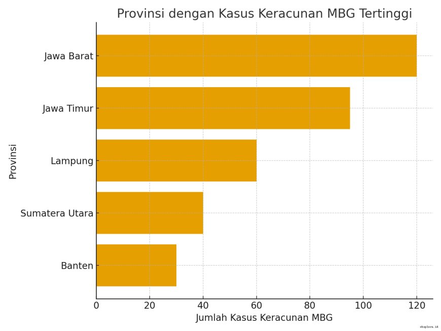 Berdasarkan laporan sementara Kementerian Kesehatan dan BPOM, berikut urutan provinsi dengan jumlah kasus keracunan MBG tertinggi: