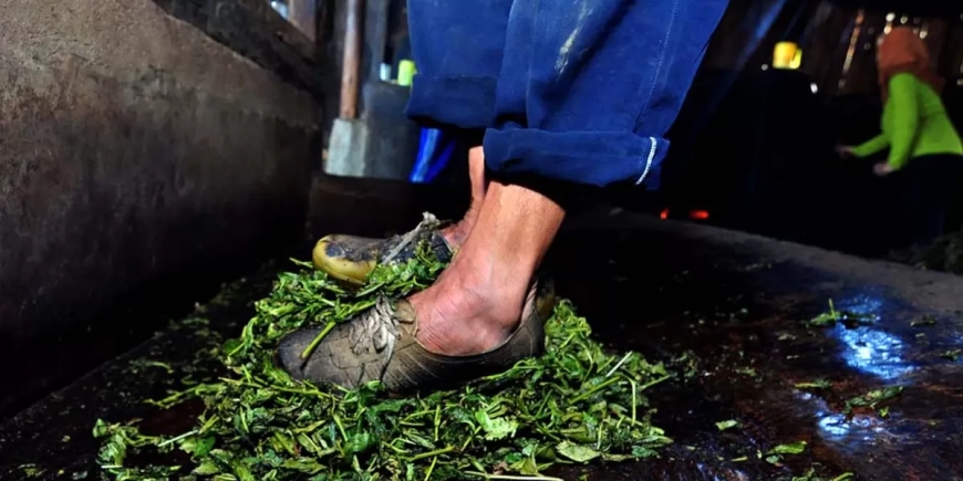 Tekanan dari kaki manusia membantu mengeluarkan minyak alami dan sari teh tanpa merusak struktur daun. Hasilnya adalah teh dengan rasa lebih pekat, dalam, dan aromatik dibandingkan teh pabrikan. Setelah proses ini, daun dikeringkan kembali untuk mengunci aroma dan menghilangkan kadar air.