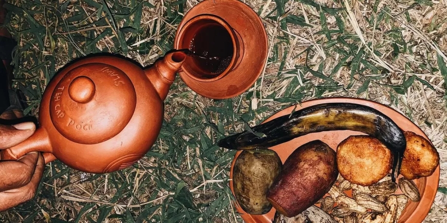 Dalam tradisi Nyaneut, teh selalu ditemani “beubeutian”—hidangan sederhana seperti singkong rebus, pisang rebus, atau camilan tradisional seperti borondong.